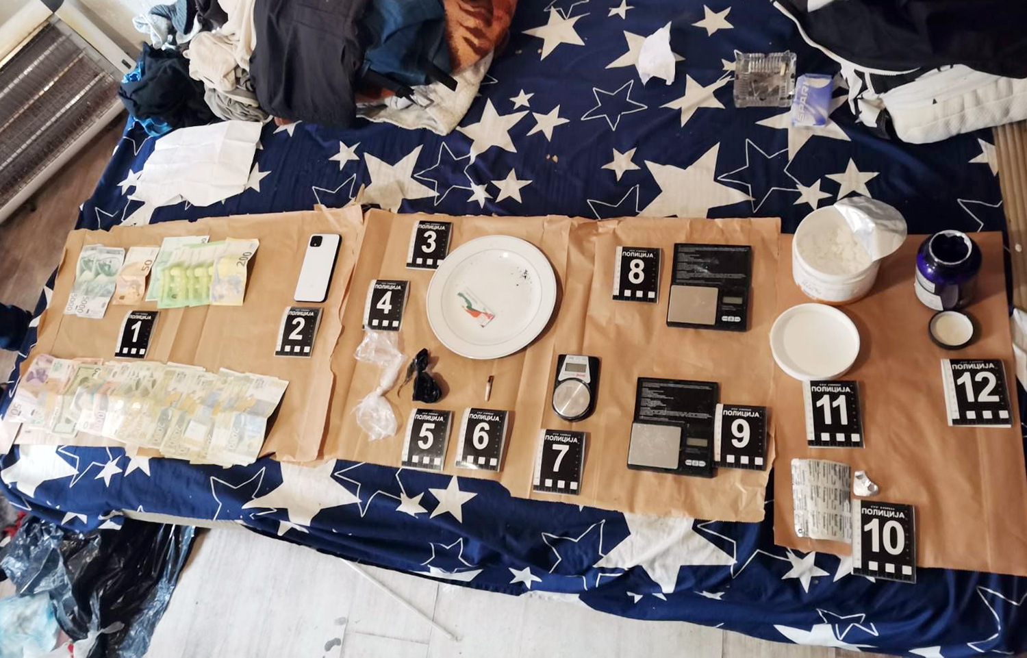 Policija je u pretresu stana M. I. i D. M. pronašla manju količinu marihuane, tri digitalne vagice sa tragovima opojne droge, kao i novac koji je, kako se sumnja stečen prodajom narkotika.