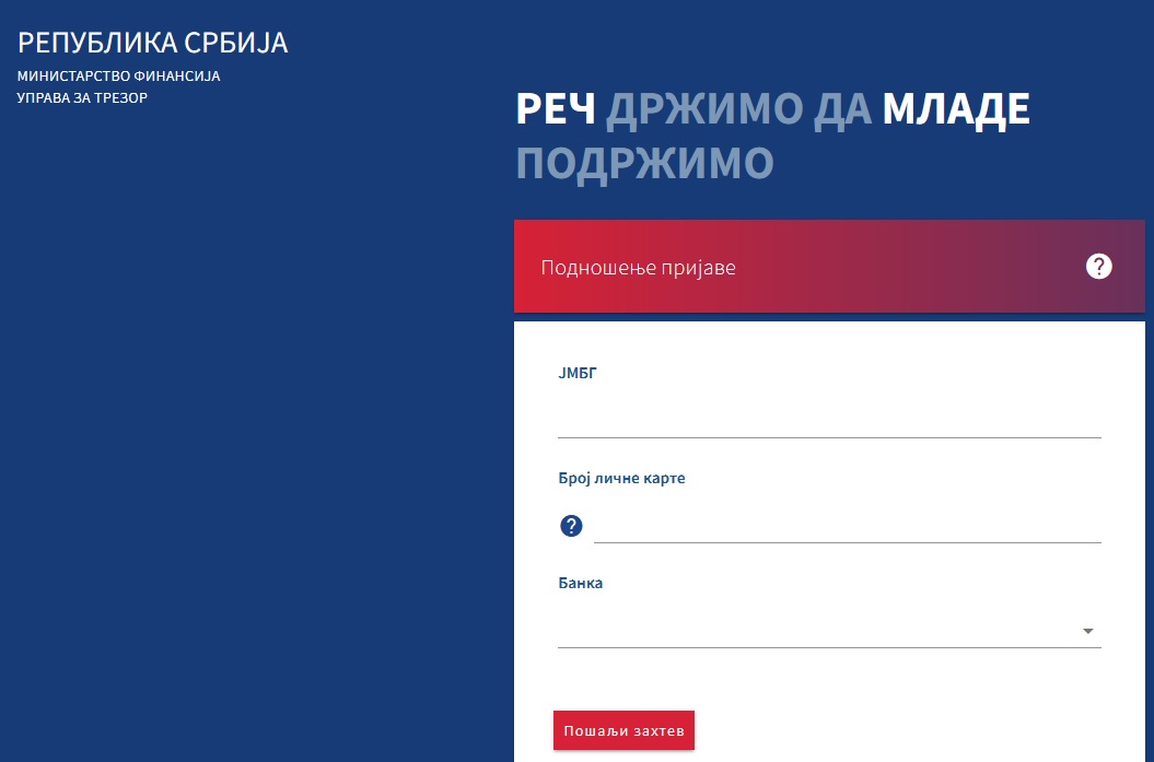 Prijavljivanje je jednostavno, kao i u prethodnom periodu, preko sajta Uprave na trezor idp.trezor.gov.rs a sve što je potrebno jeste broj lične karte, matični broj i račun u banci. Ukoliko neko nema otvoren račun u banci, otvara mu se automatski namenski račun koji će nakon isplate biti zatvoren. Poslednji dan prijave je 15. decembar, za sve mlade od 16 do 29 godina, a nakon toga sledi isplata koja bi trebalo da bude završena do 20 decembra.