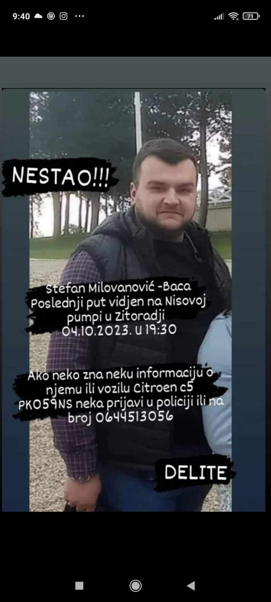 Dvadesedevetogodišnji Stefan Milovanović iz Prokuplja nestao je sinoć kada se vraćao sa posla, navodi se na sajtu www.nestalisrbija.rs. Porodica je njegov nestanak prijavila policiji u Prokuplju.