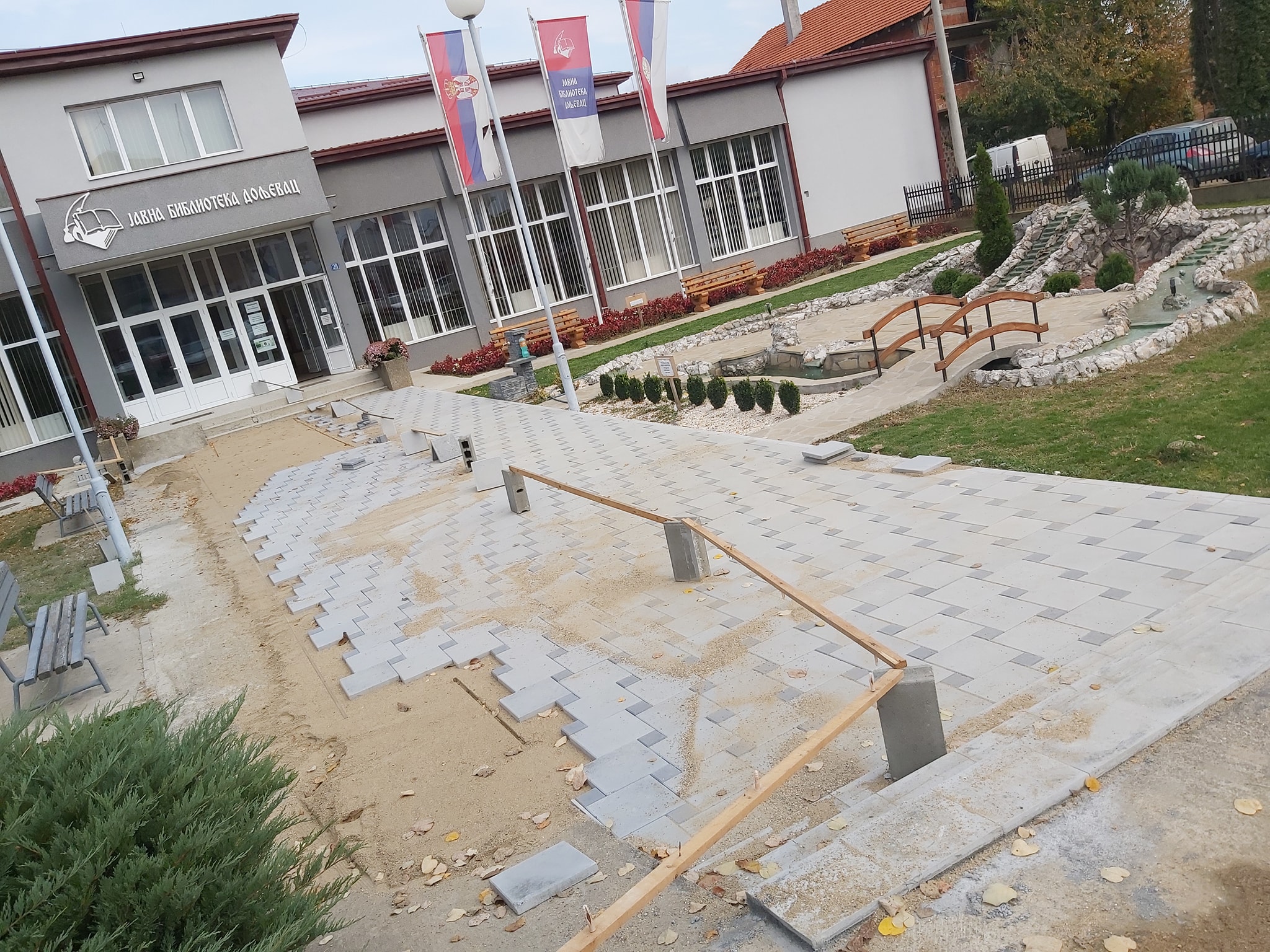 Pored uredjenja enterijera, ne manja pažnja poklanja se i prostoru oko ustanove, koji poslednjih godina dobija sasvim nov izgled. Posla ima i dalje te se tako ovih dana privodi kraju popločavanje prilaza. Stepenice i plato ispred ulaza u zgradu Javne biblioteke, nakon postavljanja behaton ploča, izgledaće potpuno drugačije, što pored estetske, ima i praktičnu primenu, tim pre jer će prilaz biti mnogo bezbedniji za osobe sa posebnim potrebama. Ta investicija koštala je 160 000 dinara, a sredstva je izdvojila lokalna vlast.